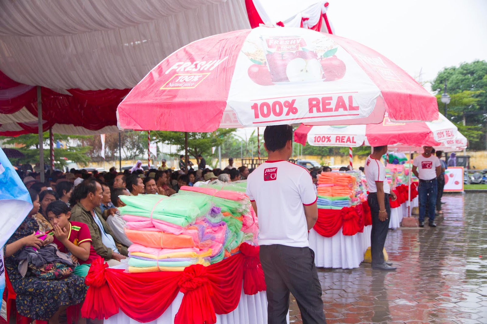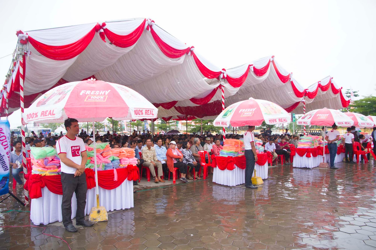 ចម្ពោះនៅថ្ងៃទី៣ខែកញ្ញានេះ កម្មវិធីចែកមុងជ្រលក់ថ្នាំនៅសួនច្បារឬស្សីកែវ ដែលមានប្រជាពលរដ្ឋចូលរួមយ៉ាងច្រើនកុះករ ទោះជាមេឃភ្លៀងយ៉ាងណាក៏ដោយ។ ប្រជាពលរដ្ឋជាច្រើនមានទឹកមុខញញឹមញញែមក្រោមដំណក់ភ្លៀងគឺ”ពួកគាត់បានឲ្យយើងដឹងថាគាត់មកទទួលមុងនេះដើម្បីយកទៅចងដេកព្រោះគាត់មិនចង់ឲ្យកូនចៅគាត់កើតជម្ងឺគ្រុនឈាមទេ ពេលកើតម្ដងៗមិនស្រួលទេហើយចំណាយអស់ច្រើនទៀត ណាមួយមុងនេះគ្មានលក់នៅទីផ្សារទេចឹងហើយគឺត្រូវតែមកយកឲ្យបានពីទឹកផ្លែឈើហ្វ្រេសស៊ី។”