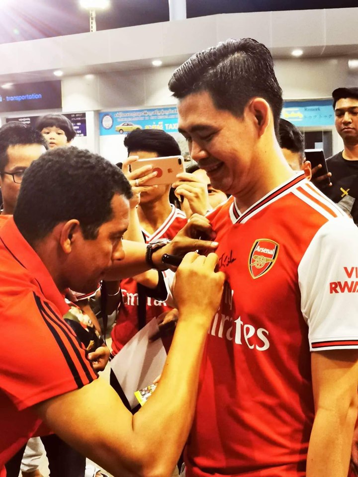 នាឱកាសមកដល់ទឹកដីខ្មែរជាលើកដំបូង អតីតកីឡាករឆ្នើមរបស់ Arsenal គឺ Gilberto Silva បានអះអាងថា វត្តមានរបស់រូបគេនៅទឹកដីខ្មែរគឺជាការលើកទឹកចិត្តមួយដល់អ្នកស្នេហាវិស័យបាល់ទាត់ ជាពិសេសអ្នកគាំទ្ររបស់ Arsenal ផ្ទាល់ ។
