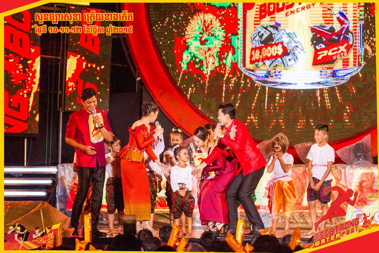 ដើម្បីអបអរព្រះរាជពិធីបុណ្យអុំទូក បណ្ដែតប្រទីប អកអុំបុក និងសំពះព្រះខែ ប៊ូសស្រ្តងក៏បានរៀបចំកម្មវិធីប្រគំតន្រ្តីដ៏អស្ចារ្យបែបប្រវត្តសាស្ត្រ BOOSTRONG WATER FESTIVAL CONCERT នេះឡើង។ ជាពិសេសនៅយប់ទី២ កាលពីម្សិលមិញនេះ ប្អូនប្រុសឡុង លីងគ័ង្គ ក៏មានវត្តមានលើឆាកប៊ូសស្រ្តងព្រមទាំងក្រុមរាំកុមារតូចៗ ដែលបានបង្ហាញសម្ថភាពដ៏អស្ចារ្យជាមួយក្បាច់រាំប្លែកៗ និងបទចម្រៀងសុទ្ធតែពេញនិយម ដែលធ្វើឲ្យអ្នកទស្សនាកោតសរសើរមិនដាច់ពីមាត់។