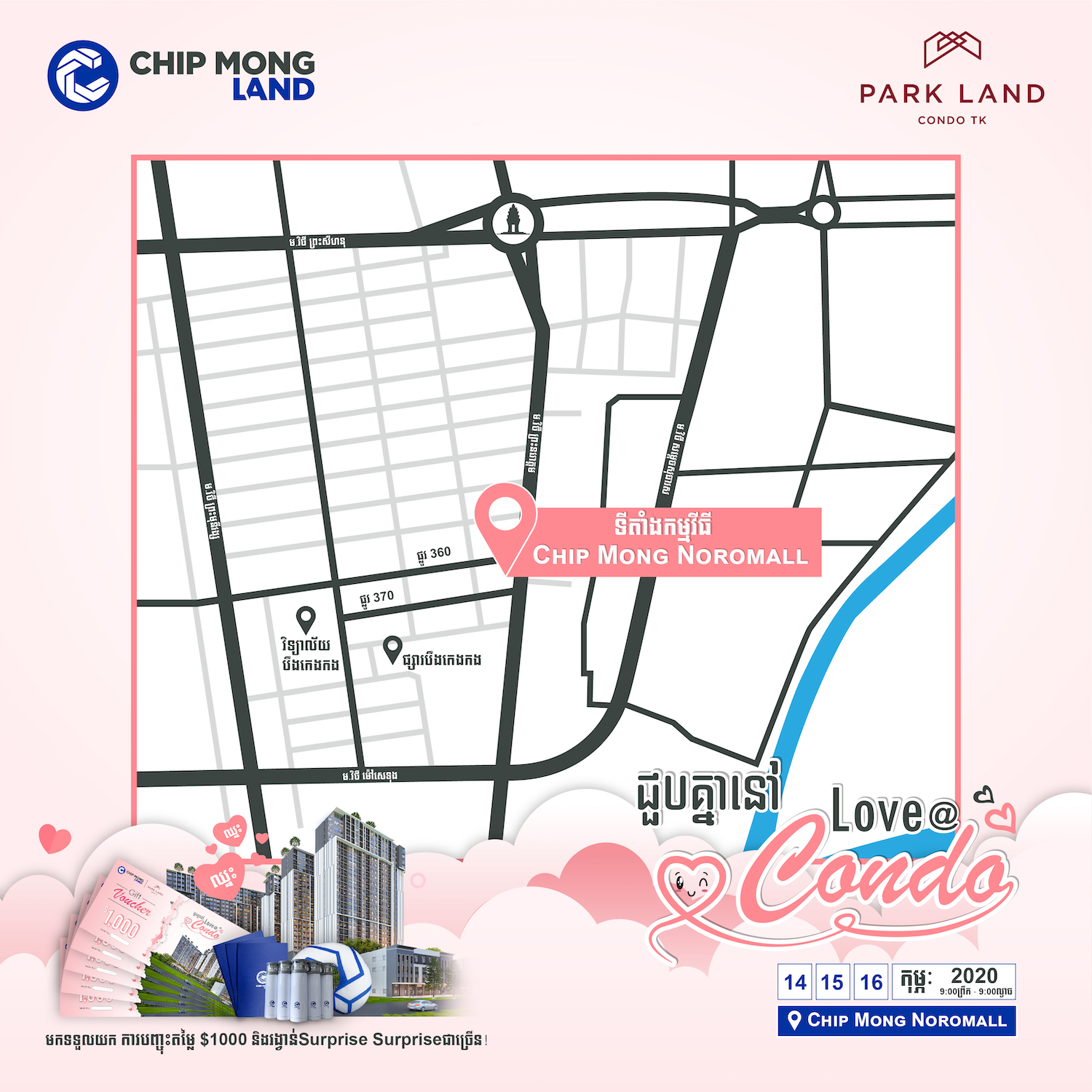 ភ្នំពេញ៖ ជីប ម៉ុង លែន ដែលជាក្រុមហ៊ុនអភិវឌ្ឍអចនទ្រព្យឈានមុខគេក្នុងប្រទេសកម្ពុជា នឹងធ្វើកម្មវិធីមួយដ៏ធំ ដែលមានឈ្មោះថា “Love @ Condo” ក្នុងទិវានៃក្តីស្រឡាញ់ឆ្នាំ ២០២០ ដែលនឹងប្រារព្ធធ្វើឡើងនៅថ្ងៃទី ១៤-១៦ ខែ កុម្ភៈ ឆ្នាំ ២០២០ នៅផ្សារទំនើបជីប ម៉ុង Noro Mall វេលាម៉ោង ៩ព្រឹក រហូតដល់ ៩យប់ ជាមួយប្រូម៉ូសិនបញ្ចុះតម្លៃទៅលើការទិញខុនដូ និងមានផ្តល់រង្វាន់ពិសេសៗជាច្រើនទៀតផង។