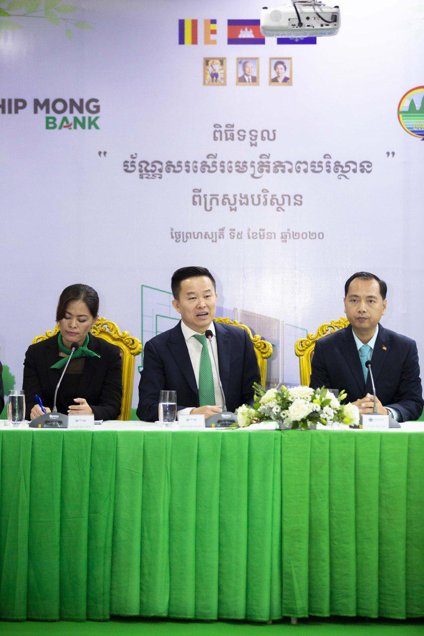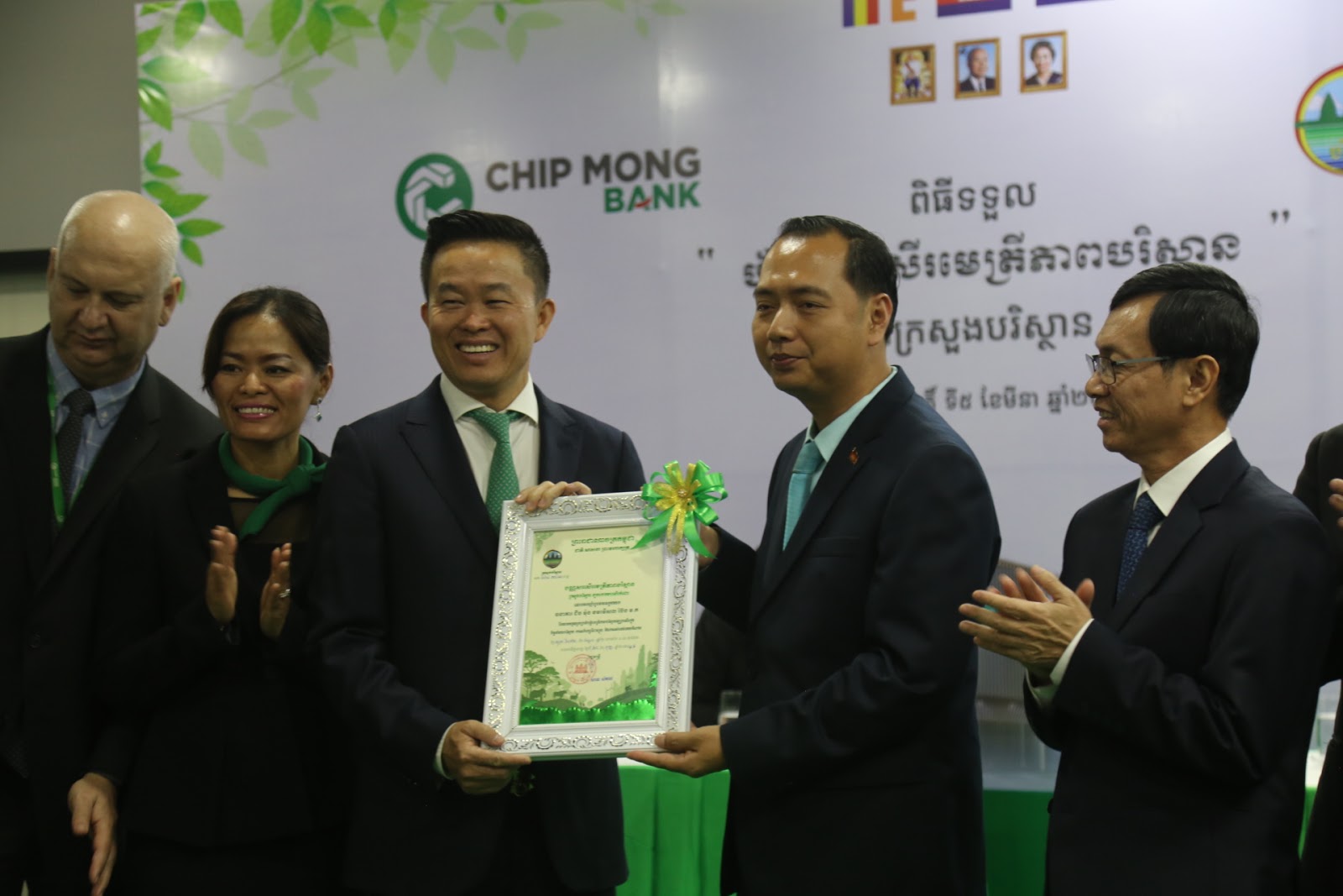ធនាគារ ជីប ម៉ុង បានទទួលបណ្ណសរសើរប្រតិបត្តិមេត្រីភាពបរិស្ថានពីប្រសួងបរិស្ថានក្រោមអធិបតីភាពរបស់ឯកឧត្តម នេត្រ ភក្រ្តា រដ្ឋលេខាធិការក្រសួងបរិស្ថាន និងឯកឧត្តម ជួប ប៉ារីស៍ អគ្គលេខាធិការរងនៃអគ្គលេខាធិការដ្ឋានក្រុមប្រឹក្សាជាតិអភិវឌ្ឍន៍ដោយចីរភាព កាលពីថ្ងៃទី០៥ ខែមីនា ឆ្នាំ២០២០។