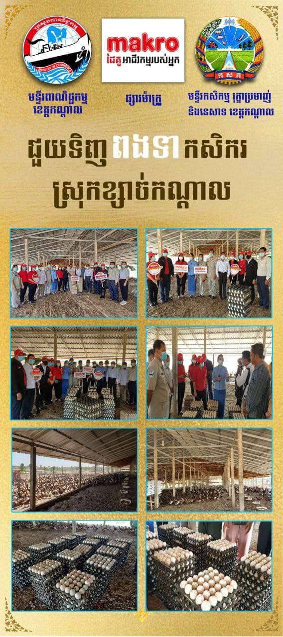 ជាមួយគ្នានេះ ឯកឧត្តមក៏សូមថ្លែងអំណរគុណយ៉ាងជ្រាលជ្រៅបំផុតចំពោះសមត្ថកិច្ចពាក់ព័ន្ធទាំងអស់ដែលចូលរួមរកដំណោះស្រាយបញ្ហាប្រឈមរបស់កសិករកន្លងមក បានយ៉ាងល្អប្រសើរ ហើយមានការយោគយល់គ្នាខ្ពស់ ។ សូមជម្រាបផងដែរថា ផ្សារម៉ាក្រូបោះជំហានចូលក្នុងប្រទេសកម្ពុជាក្នុងឆ្នាំ២០១៧ ជា​មជ្ឈមណ្ឌល​ចែកចាយ​ផលិតផល​បោះដុំ និង​លក់​រាយ​ធំ​បំផុត ដែលបច្ចុប្បន្នមានពីរសាខាគឺ ម៉ាក្រូភ្នំពេញ និងម៉ា​ក្រូខេត្តសៀមរាប។ ទន្ទឹមនឹងនេះ ផ្សារម៉ាក្រូតែងតែចូលរួមជួយលើកស្ទួយផលិតផលក្នុងស្រុកជាច្រើន ជាក់ស្ដែងដូចជាការប្រមូលទិញស៊ុតសត្វនៅកម្ពុជាជាដើម៕