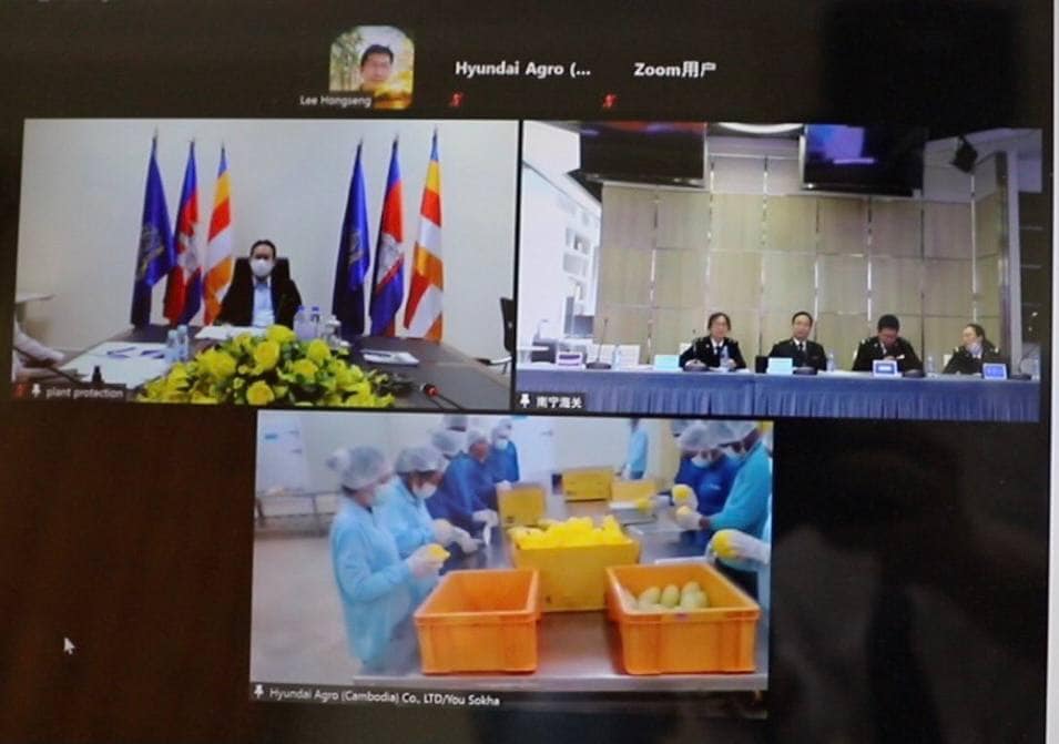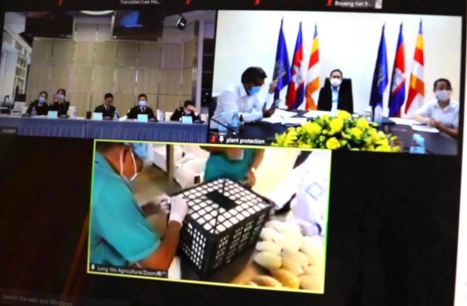 គួររម្លឹកផងដែរថា កាលពីថ្ងៃទី១០ ខែមីនា កន្លងទៅនេះ ក្រុមការងារអគ្គនាយកដ្ឋានកសិកម្ម បានដំណើរការត្រួតពិនិត្យចម្ការស្វាយ និងរោងចក្រប្រព្រឹត្តកម្មពងរុយក្នុងផ្លែស្វាយ តាមអនឡាញជាមួយភាគីគយនៃខេត្តក្វាងស៊ី តំណាង អគ្គរដ្ឋបាលគយនៃសាធារណរដ្ឋប្រជាមានិតចិន នៅលើទីតាំងដែលបានគ្រោងទុកដូចជា៖ ១-ចម្ការស្វាយ UCDL Development Co.,Ltd ២- ចម្ការស្វាយ Angkor Harvest Co.,Ltd ៣-ចម្ការស្វាយ Bamin Agriculture Hi-Tech Development Co.,Ltd ៤-រោងចក្រប្រព្រឹត្តកម្មពងរុយចោះផ្លែស្វាយ Long Wo Agriculture (Cambodia) Co.,Ltd ៥-រោងចក្រប្រព្រឹត្តកម្មពងរុយចោះផ្លែស្វាយ AL JAZEELAND FOOD PTE. LTD ៦-រោងចក្រប្រព្រឹត្តកម្មពងរុយចោះផ្លែស្វាយ BOEUNG KET FRESH FRUITS Co.,Ltd ៧-រោងចក្រប្រព្រឹត្តកម្មពងរុយចោះផ្លែស្វាយ HYUNDAI AGRO (CAMBODIA) CO.,Ltd។