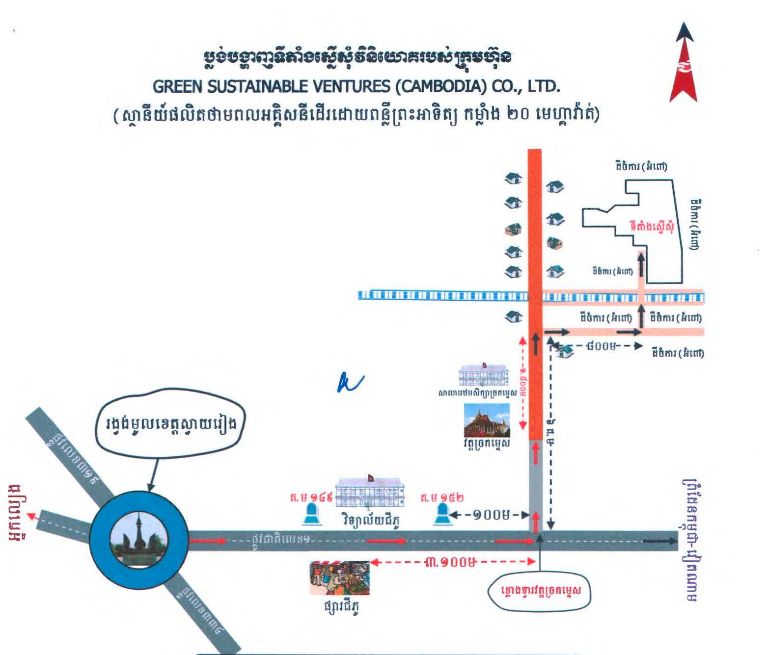 ៤. GREEN SUSTAINABLE VENTURES (CAMBODIA) CO., LTD. គម្រោងបង្កើតរោងចក្រផលិតថាមពលអគ្គិសនីដើរដោយពន្លឺព្រះអាទិត្យ អានុភាព 20MW ដែលមានទីតាំងវិនិយោគស្ថិតនៅភូមិមនោរម្យ ឃុំមនោរម្យ ស្រុកស្វាយទាប ខេត្តស្វាយរៀង មានទុនវិនិយោគប្រមាណ១៧,៦លានដុល្លារអាមេរិក និងអាចបង្កើតការងារបានចំនួន ១៥០កន្លែង។