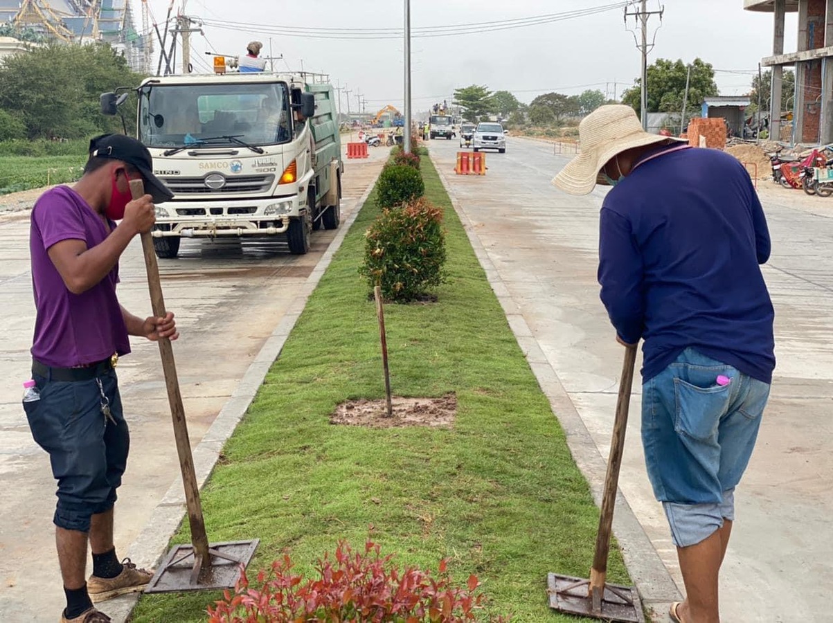 ​លោក​ សាំ​ ពិសិដ្ឋ​ បាន​ឱ្យ​ដឹង​ទៀត​ថា​ សម្រាប់​ពេល​នេះក្រុមការងារកំពុងតម្លើងបង្គោលភ្លេីងលេីមហាវិថីថ្មីទទឹង៣០ម៉ែត្រ​ ចាប់បុរីអង្គរ ដល់ផ្លូវមុខហ្រ្គេនភ្នំពេញ ចំនួន១០០បង្គោលសិន នឹងបន្តទៅទៀតនៅពេលផ្លូវស្ថាបនារួច​ ចំណែក​សួនច្បារ​នៅចំកណ្តាលផ្លូវ ក៏ក្រុមការ ងារបាន និង​កំពុងដាំផ្កាយ៉ាងសស្រាក់សស្រាំផងដែរ​ ។