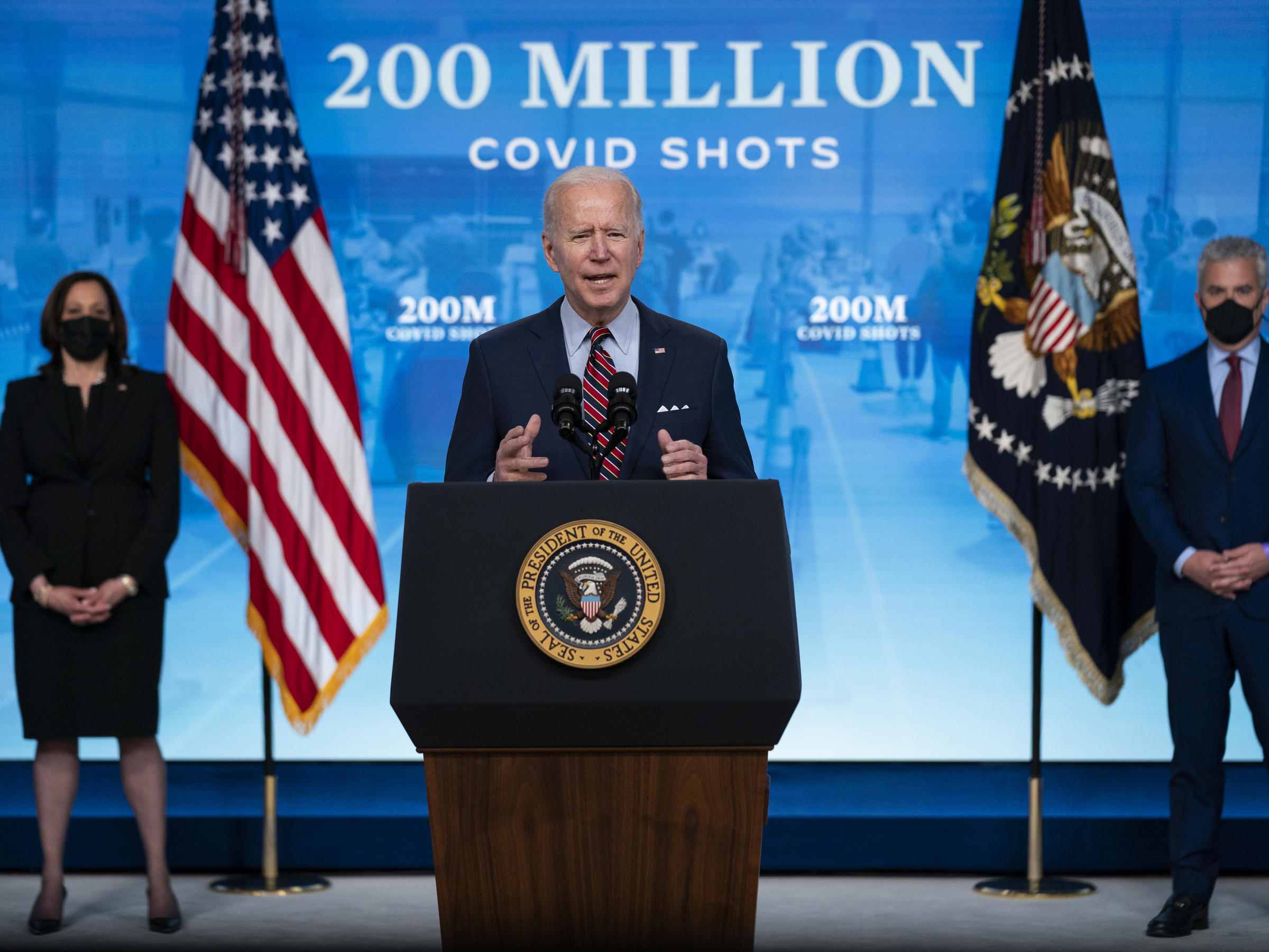 ប្រធានាធិបតីអាមេរិកលោក Joe Biden បានមានប្រសាសន៍ថា រដ្ឋបាលរបស់លោក បានចាក់វ៉ាក់សាំងការពារវីរុស Covid-19 ចំនួន ២០០ លានម្ជុល (Shot) ដោយបំពេញគោលរបស់ប្រធានាធិបតីរូបនេះមុនពេលកំណត់។ គួររម្លឹកថា លោក Biden បានសន្យាថា នឹងផ្តល់នូវវ៉ាក់សាំង ២០០ លានម្ជុល (Shot) ឬ ស្មើនឹង ១០០លានដូសនេះក្នុងរយៈពេល ១០០ថ្ងៃដំបូងរបស់លោក នៃការចូលកាន់ដំណែង។ នាពេលនោះលោកបានមានប្រសាសន៍ថា « ១០០ ថ្ងៃដំបូងរបស់ខ្ញុំនឹងមិនបញ្ចប់វីរុស Covid-19 ទេ តែយើងអាចផ្លាស់ប្តូរកម្រិតនៃជំងឺ និងផ្លាស់ប្តូរជីវិតនៅអាមេរិកឱ្យប្រសើរឡើង »។