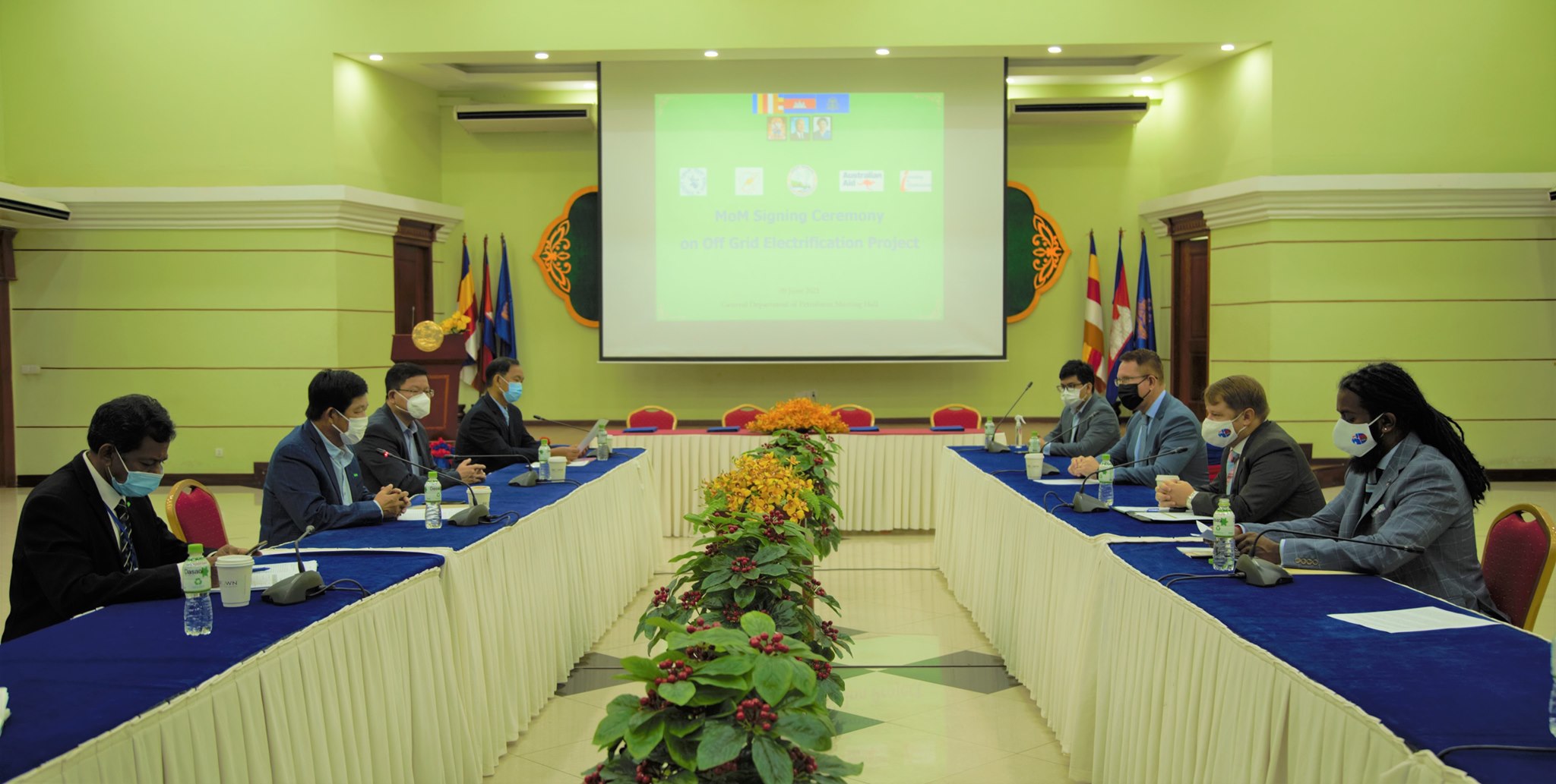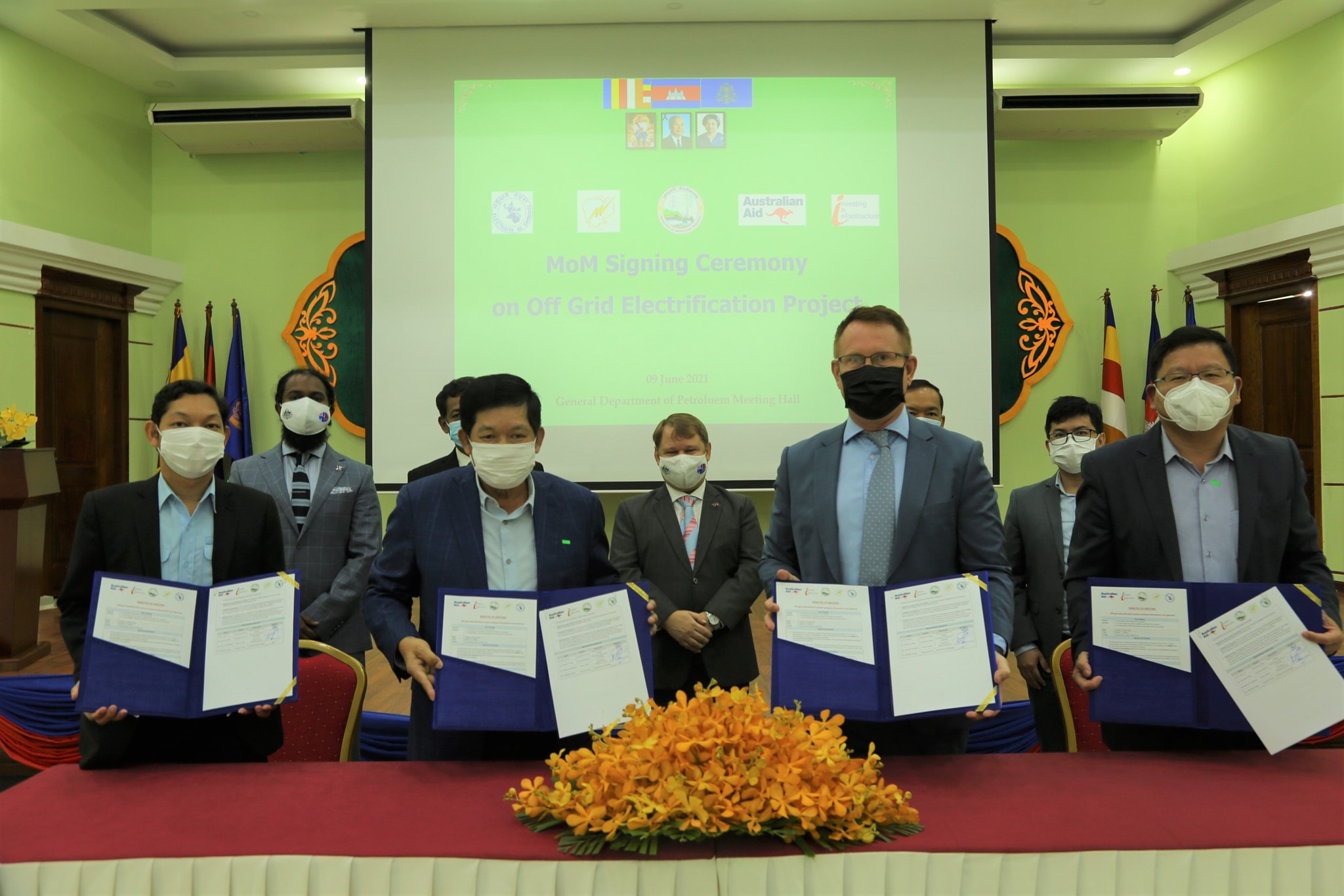 ជាមួយគ្នានេះដែរ ឯកឧត្តម ទី នរិន្ទ រដ្ឋលេខាធិការក្រសួងរ៉ែ និងថាមពល បានចុះហត្ថលេខា លើឯកសារគម្រោងនេះ កាលពីថ្ងៃទី០៩ ខែមិថុនា ឆ្នាំ២០២១ ដោយមានការចូលរួមពី ភារធារីស្ថានទូតអូស្រ្តាលី លោក Luke Arnold និងលេខាធិការទី២ លោក Anthony Samson។ ឯកឧត្តមបានមានប្រសាសន៍ថា៖ “ការផ្តល់ថាមពលអគ្គិសនី ដែលអាចទុកចិត្តបាន និងមានតំលៃសមរម្យ ដល់ប្រជាជនទាំងអស់នៅក្នុងប្រទេសកម្ពុជា គឺជាអទិភាពសំរាប់ក្រសួងរ៉ែ និងថាមពល។ ដូច្នេះ វាទាមទារការយកចិត្តទុកដាក់ពិសេសពីរដ្ឋាភិបាលកម្ពុជាដើម្បីភ្ជាប់គម្លាត និងស្វែងរកមធ្យោបាយច្នៃប្រឌិត ដើម្បីពន្លឿនការទទួលបានអគ្គិសនីប្រើប្រាស់ នៅតំបន់ដែលមិនទាន់មានអគ្គិសនី។