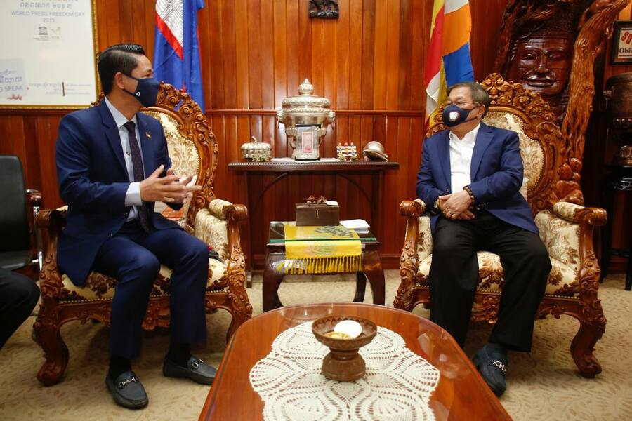 ក្នុងការអនុញ្ញាតឱ្យលោក ឌិន សុមេធារិទ្ធ ប្រធានក្លឹបសេដ្ឋធុរជន និងជាស្ថាបនិកភូមិផ្កា ត្រកួន និងសហការី ចូលជួប សម្តែងការគួរសម និងប្រគល់អំណោយជាផ្លែមៀនប៉ៃលិន ៥០០គីឡូក្រាម នាព្រឹកថ្ងៃទី ១៦ ខែសីហា ឆ្នាំ២០២១ នៅទីស្តីការក្រសួងព័ត៌មាន ឯកឧត្តម ខៀវ កាញារីទ្ធ រដ្ឋមន្រ្តីក្រសួងព័ត៌មាន បានជួយទិញផ្លែមៀនប៉ៃលិន ចំនួន ១តោន តាមរយៈលោក ឌិន សុមេធារិទ្ធ សម្រាប់ជូនដល់មន្ត្រីរាជការ ក្រោមឱវាទក្រសួង ដើម្បីជាការចូលរួមកម្លាំងគ្នាបង្កើតយុទ្ធនាការប្រមូលទិញផ្លែមៀនប៉ៃលិន របស់ប្រជាកសិករ នៅស្រុកភ្នំព្រឹក ខេត្តបាត់ដំបង។