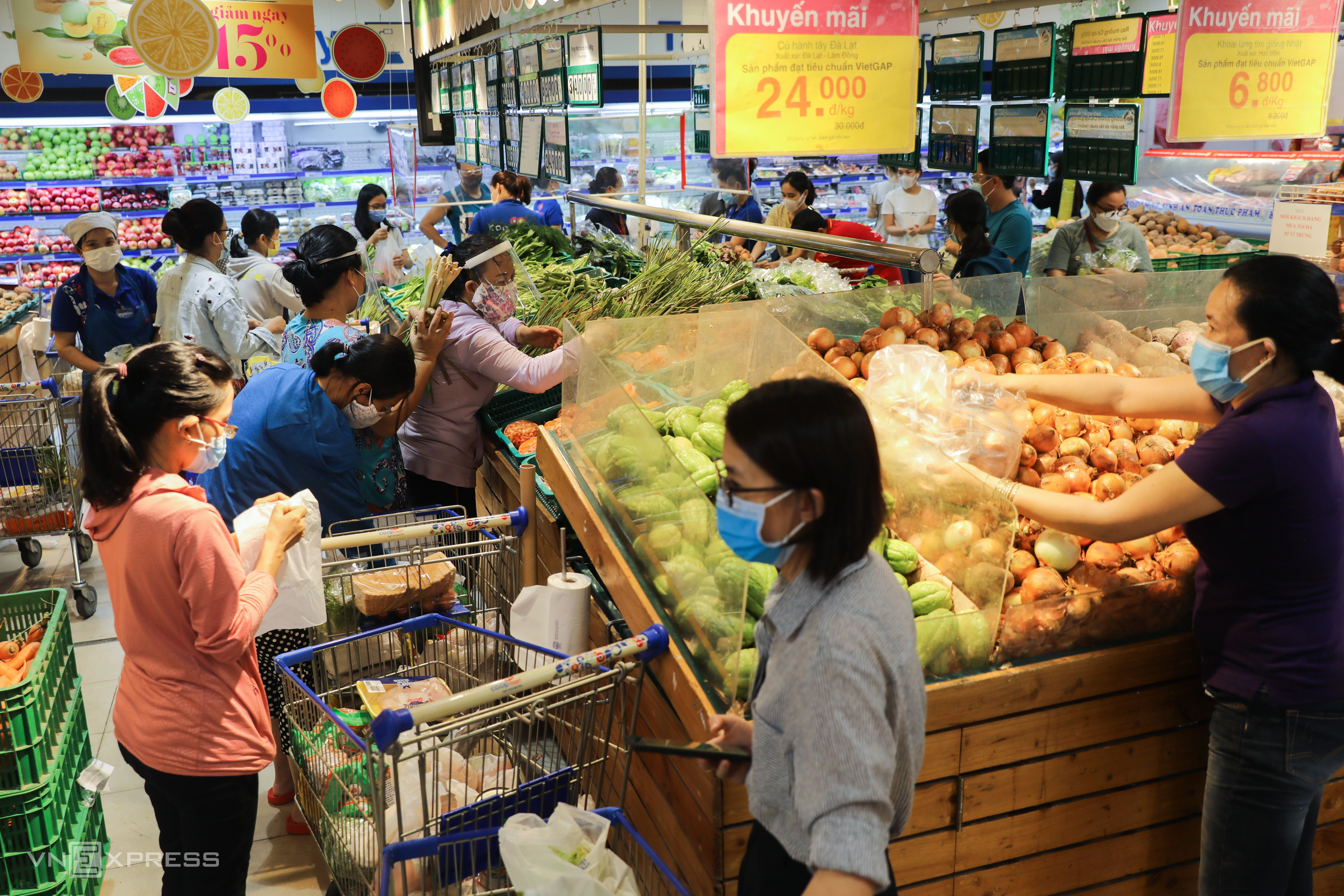 អ្នកនាំពាក្យរបស់ផ្សារទំនើប Aeon Vietnam បាននិយាយថា ថ្ងៃខ្លះទំនិញនៅក្នុងផ្សារអស់ពីធ្នើគ្មានសល់ ហើយអតិថិជនជាច្រើនតម្រង់ជួរនៅកន្លែងគិតលុយ។ ជាមួយគ្នានេះ ហាង Coopmart នៅ Nguyen Dinh Chieu និង Cong Quynh ស្ថិតក្នុងស្ថានភាពដូចគ្នាដោយមានអតិថិជនតម្រង់ជួរនៅខាងក្រៅ ខណៈហាងមីនីម៉ាត ហាងលក់គ្រឿងទេស និងអ្នកលក់តាមអ៉ីនធឺណេត ក៏ឃើញមានតម្រូវការកើនឡើងផងដែរ។
