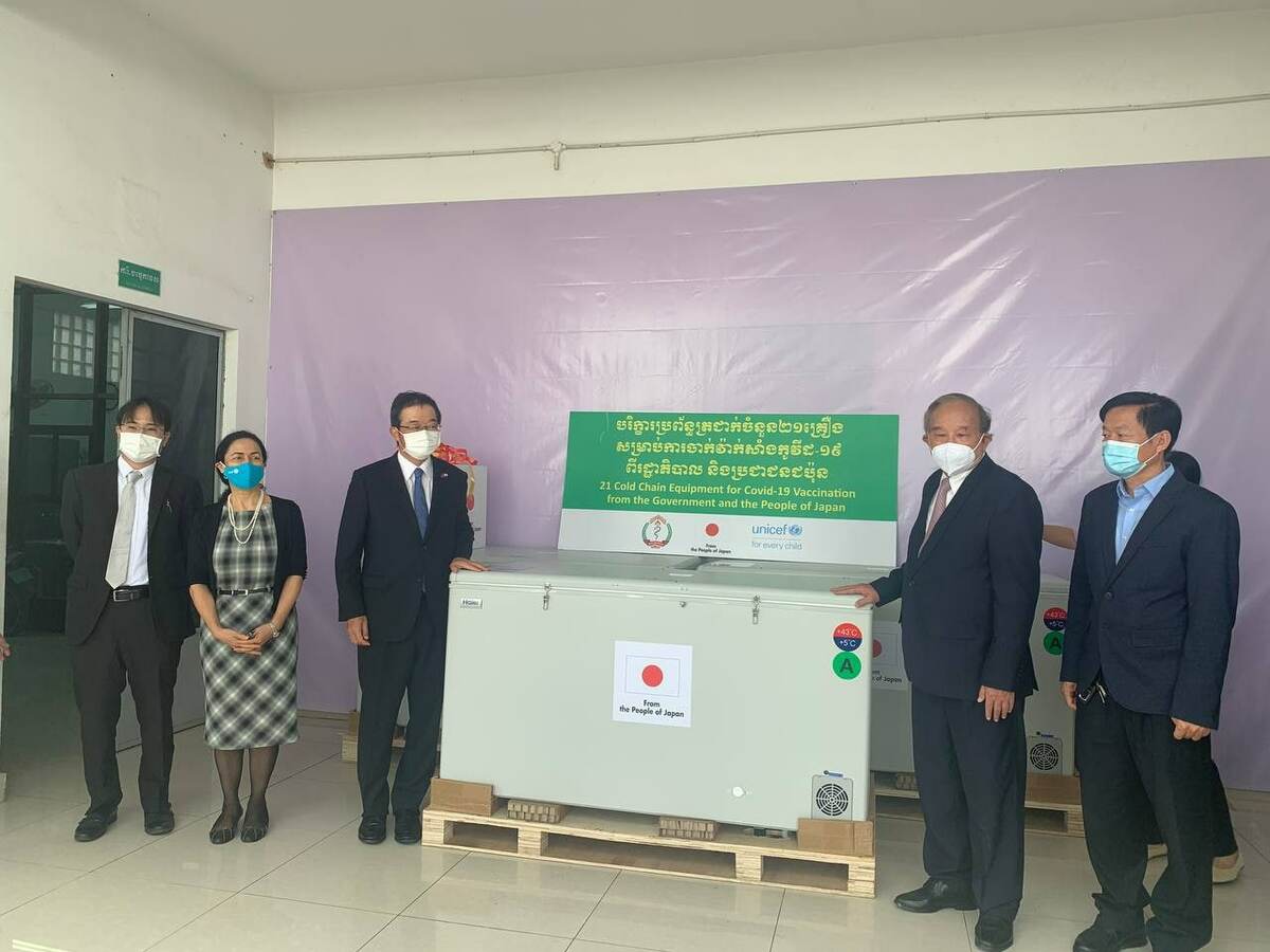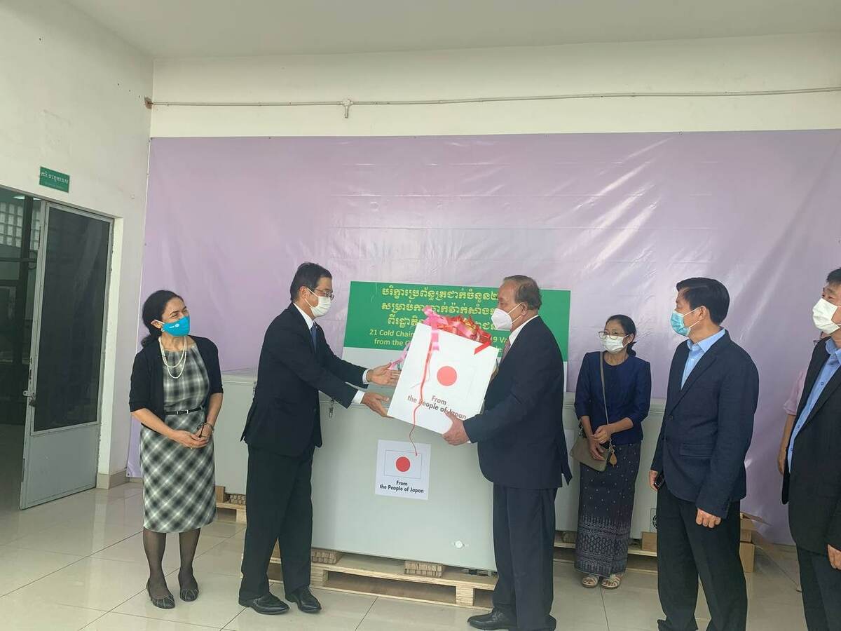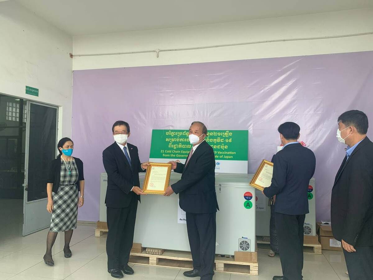 យោងតាមការចុះផ្សាយរបស់ក្រសួងព័ត៌មានបានឱ្យដឹងថា បរិក្ខារចាំបាច់សំខាន់ៗសម្រាប់ពង្រឹងការគ្រប់គ្រងប្រព័ន្ធត្រជាក់ ដែលប្រើប្រាស់សម្រាប់វ៉ាក់សាំងកូវីដ-១៩ ត្រូវបានប្រគល់ជូនក្រសួងសុខាភិបាលកម្ពុជាបន្ថែមទៀត ក្រោមការគាំទ្រដោយប្រទេសជប៉ុន តាមរយៈអង្គការយូនីសេហ្វ។