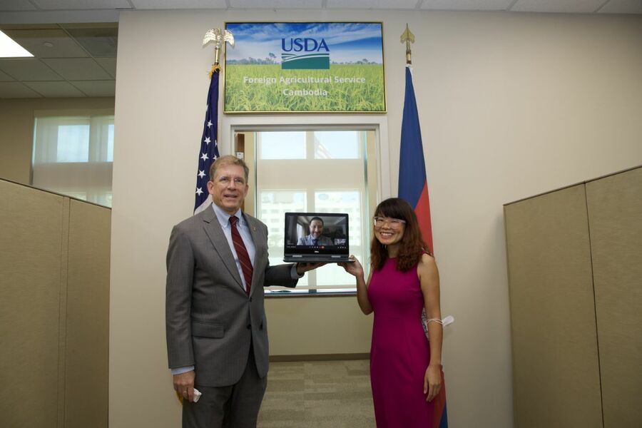 ឯកឧត្តម ឯកអគ្គរដ្ឋទូតសហរដ្ឋអាមេរិកប្រចាំប្រទេសកម្ពុជា W. Patrick Murphy បានឱ្យដឹងថា ត្បិតតែការិយាល័យផ្នែកសេវាកម្មជាមួយបរទេសរបស់ក្រសួងកសិកម្មអាមេរិក ហៅកាត់ថា USDA ស្ថិតនៅក្នុងស្ថានទូតអាមេរិកនៅភ្នំពេញមែន ប៉ុន្តែការងាររបស់គេមាននៅទូទាំងប្រទេសកម្ពុជា ដើម្បីទ្រទ្រង់កិច្ចសហការ និងពាណិជ្ជកម្មទ្វេភាគី ផ្នែកកសិកម្ម សម្រាប់ជាផលប្រយោជន៍នៃប្រទេសទាំងពីរ។