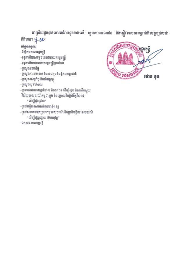ខាងក្រោមនេះជាសេចក្ដីជូនដំណឹងរបស់ក្រសួងទេសចរណ៍៖