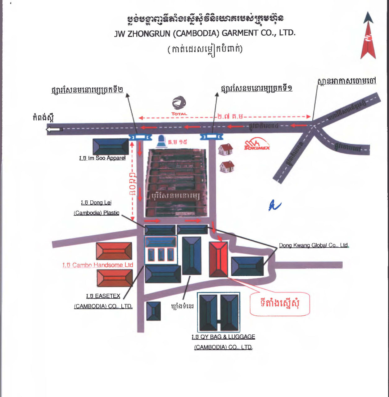 ៩-JW ZHONGRUN (CAMBODIA) GARMENT CO., LTD: គម្រោងបង្កើតរោងចក្រកាត់ដេរសម្លៀកបំពាក់ ដែលមានទីតាំងវិនិយោគស្ថិតនៅភូមិកន្ទោកជើង សង្កាត់កន្ទោក ខណ្ឌកំបូល រាជធានីភ្នំពេញ មានទុនវិនិយោគប្រមាណ ៤លានដុល្លារអាមេរិក និងអាចបង្កើតការងារបានចំនួន ១.៦៤៨កន្លែង។