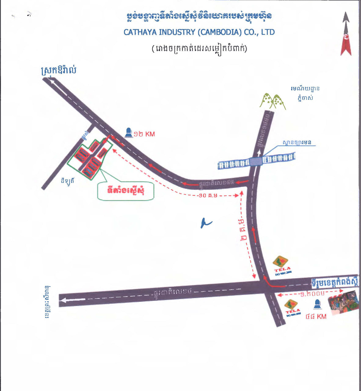 ៧-CATHAYA INDUSTRY (CAMBODIA) CO., LTD: គម្រោងបង្កើតរោងចក្រកាត់ដេរសម្លៀកបំពាក់ ដែលមានទីតាំងវិនិយោគស្ថិតនៅផ្លូវជាតិលេខ៤៤ ភូមិសន្តិភាព ឃុំតាំងក្រូច ស្រុកសំរោងទង ខេត្តកំពង់ស្ពឺ មានទុនវិនិយោគប្រមាណ ៥,៥លានដុល្លារអាមេរិក និងអាចបង្កើតការងារបានចំនួន ១.៦៤៧កន្លែង។