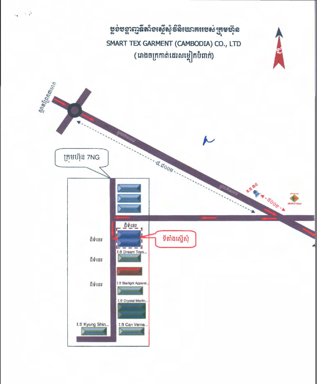 ៥-SMART TEX GARMENT (CAMBODIA) CO., LTD: គម្រោងបង្កើតរោងចក្រកាត់ដេរសម្លៀកបំពាក់ដែលមានទីតាំងវិនិយោគស្ថិតនៅភូមិព្រៃចាស់ ឃុំវិហារសួគ៌ ស្រុកខ្សាច់កណ្តាល ខេត្តកណ្តាល មានទុនវិនិយោគប្រមាណ ៦,៤លានដុល្លារអាមេរិក និងអាចបង្កើតការងារបានចំនួន ៣.៣៨០កន្លែង។