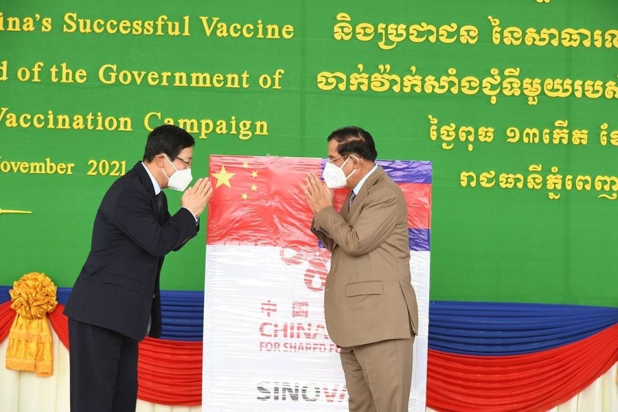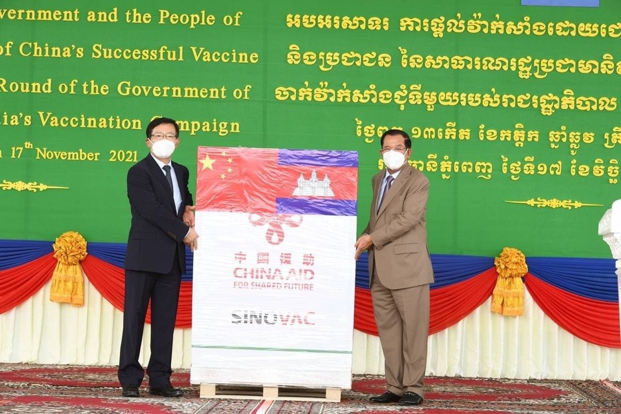 ក្នុងពិធីអបអរសាទរការផ្ដល់វ៉ាក់សាំង ដោយជោគជ័យរបស់ប្រទេសចិន ចំពោះយុទ្ធនាការចាក់វ៉ាក់សាំង ជុំទីមួយរបស់កម្ពុជា និងការផ្ដល់ជំនួយជាវ៉ាក់សាំងបង្ការជំងឺកូវីដ-១៩ ប្រភេទស៊ីណូវ៉ាក់ ចំនួន២លានដូសបន្ថែមទៀត របស់រដ្ឋាភិបាលនៃសាធាណរដ្ឋប្រជាមានិតចិន ជូនដល់ប្រជាជន និងរាជរដ្ឋាភិបាលកម្ពុជា នាព្រឹកថ្ងៃទី ១៧ ខែវិច្ឆិកា ឆ្នាំ២០២១ នៅឯព្រលានយន្តហោះអន្តរជាតិភ្នំពេញ សម្ដេចតេជោ ហ៊ុន សែន បានមានប្រសាសន៍ថា កាលពីថ្ងៃចន្ទដើមសប្ដាហ៍កន្លងទៅនេះ សម្ដេចបានជួបពិភាក្សាជាមួយនាយករដ្ឋមន្ត្រីចិន Li Keqiang ដោយបានលើកឡើងប្រធានបទជាច្រើនមកពិភាក្សា។ នៅក្នុងជំនួបនោះសម្តេចបានបញ្ជាក់ជូនឯកឧត្ដនាយករដ្ឋមន្ត្រីចិន អំពីបញ្ហាវ៉ាក់សាំងជំងឺកូវីដ-១៩ ដោយបានបញ្ជាក់ថា នេះជាការបញ្ចប់នូវដំណាក់កាលទី១។ ប៉ុន្តែកម្ពុជានៅ ត្រូវការការផ្គត់ផ្គង់វ៉ាក់សាំងពីប្រទេសចិនមកជាបន្តទៀត មិនមែនបញ្ចប់ត្រឹមថ្ងៃនេះទេ ដោយសម្ដេចតេជោបានលើកឡើងថា នេះជាការបញ្ចប់ដំណាក់កាលទី១ តែប៉ុណ្ណោះ។ ឯកឧត្ដមនាយករដ្ឋមន្ត្រីចិន ក៏បានសន្យាពីការផ្គត់ផ្គង់បន្តវ៉ាក់សាំង។