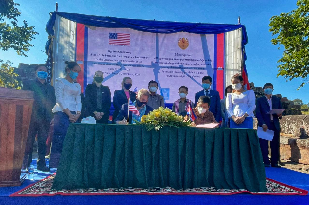 យោងតាមការចុះផ្សាយរបស់ក្រសួងព័ត៌មានបានឱ្យដឹងថា ស្ថានទូតសហរដ្ឋអាមេរិកប្រចាំកម្ពុជាបានប្រកាសនូវការរួមចំណែកយ៉ាងសំខាន់មួយជំហានទៀត ក្នុងការជួយអភិរក្សាការពារនូវទីតាំងសម្បត្តិបេតិកភណ្ឌពិភពលោកគឺប្រាសាទព្រះវិហារ ដែលបានផ្ដល់ជំនួយបន្ថែមនូវទឹកប្រាក់ចំនួន ៨៦ ៦៦៤ ដុល្លារអាមេរិក សម្រាប់គម្រោងដំណាក់កាលទី៣ នៃការអភិរក្ស និងជួសជុលជណ្តើរខាងជើងប្រាសាទព្រះវិហារ។