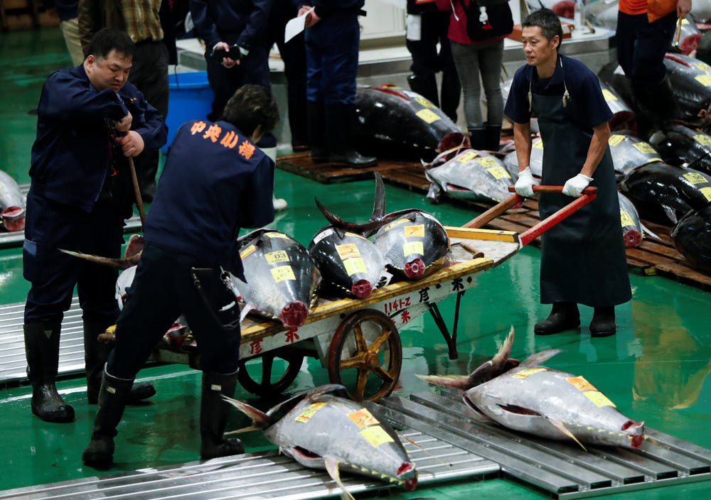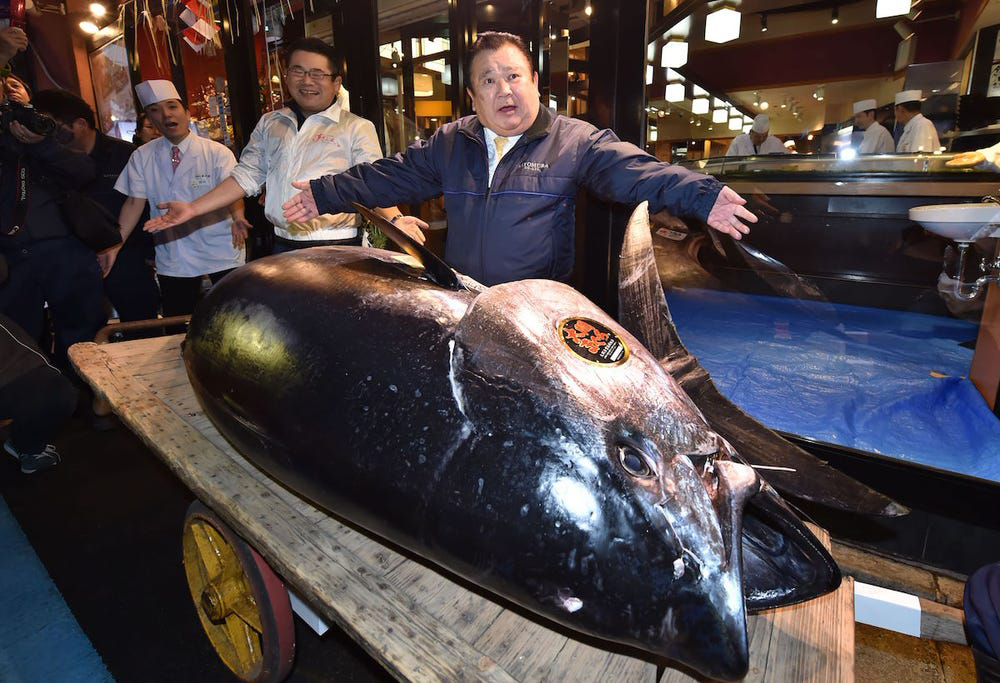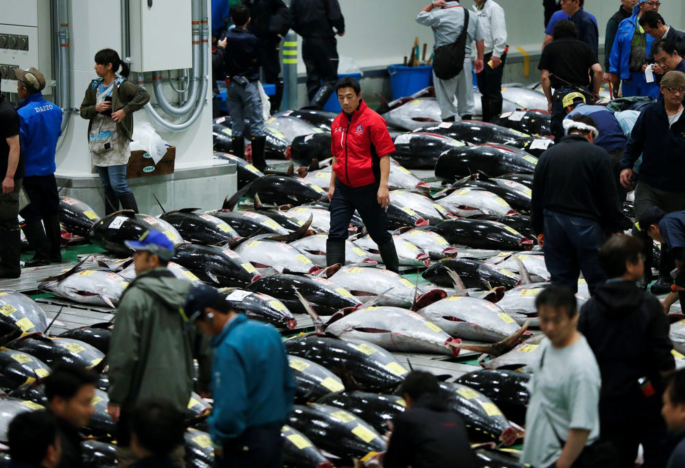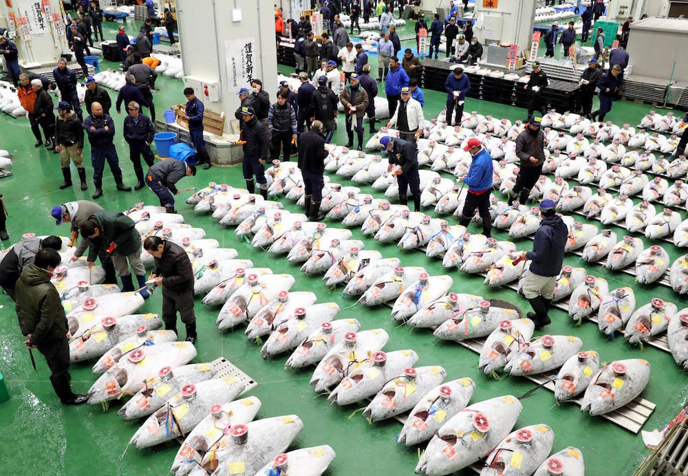 ផ្សារ Toyosu ក្នុងទីក្រុងតូក្យូ គឺជាទីផ្សារត្រីដ៏ធំបំផុតនៅក្នុងពិភពលោក ហើយក៏ជាកន្លែងសម្រាប់ការដេញថ្លៃត្រីធូណា ដ៏ល្បីល្បាញលើពិភពលោកផងដែរ។ អ្នកដេញថ្លៃ និងអ្នកជំនាញបានសម្រុកទៅទីផ្សារមួយនេះរៀងរាល់ព្រឹក ដើម្បីមានឱកាសទិញត្រីធូណាលំដាប់កំពូល ជួនកាលអ្នកទិញហ៊ានចំណាយប្រាក់រហូតដល់ ៣លានដុល្លារឯណោះ សម្រាប់ត្រីធូណា ១ក្បាល។