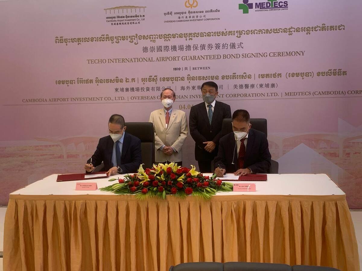 ពិធីចុះហត្ថលេខាលើកិច្ចព្រមព្រៀងសញ្ញាបណ្ណមានបុគ្គលធានា តម្លៃ៣លានដុល្លារអាម៉េរិក រវាងក្រុមហ៊ុន Medtecs International Corporation Limited (“Medtecs”) និង ក្រុមហ៊ុន Cambodia Airport Investment Co., Ltd (CAIC) បានប្រព្រឹត្តទៅនៅរសៀលថ្ងៃ៣កើត ខែចេត្រ ឆ្នាំឆ្លូវ ត្រីស័ក ព.ស. ២៥៦៥ ត្រូវនឹងថ្ងៃចន្ទ ទី០៤ ខែមេសា ឆ្នាំ២០២២ ដោយមានការចូលរួមពីសំណាក់ លោក Clement Yang (ប្រធានក្រុមប្រឹក្សាភិបាលYang”) ដែលជាស្ថាបនិក និងជាប្រធានក្រុមប្រឹក្សាភិបាល រួមទាំងគណៈគ្រប់គ្រងជាន់ខ្ពស់នៃក្រុមហ៊ុន Medtecs និងតំណាងមកពីក្រុមហ៊ុន CAIC អ្នកឧកញ៉ាបណ្ឌិត ពុង ឃាវសែ ប្រធានក្រុមហ៊ុន OCIC និងលោក ឆារស៍ វ៉ាន់ Charles Vann សមាជិកក្រុមប្រឹក្សាភិបាលនៃក្រុមហ៊ុន CAIC។ ថវិកាដែលបានមកពីការវិនិយោគលើសញ្ញាបណ្ណមានបុគ្គលធានានេះ នឹងត្រូវប្រើប្រាស់សម្រាប់ការសាងសង់ និងការអភិវឌ្ឍគម្រោងសាងសង់អាកាសយានដ្ឋានអន្តរជាតិតេជោ។