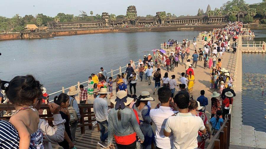 សូមបញ្ជាក់ថា បើតាមរបាយការណ៍របស់ឯកឧត្តមបណ្ឌិត ថោង ខុន រដ្ឋមន្រ្តីក្រសួងទេសចរណ៍ បានឱ្យដឹងថា នៅឱកាសពិធីបុណ្យចូលឆ្នាំប្រពៃណីជាតិខ្មែររយៈពេល៣ថ្ងៃ និងថ្ងៃអាទិត្យចុងសប្តាហ៍១ថ្ងៃទៀត ចាប់ពីថ្ងៃទី១៤-១៧ ខែមេសា ឆ្នាំ២០២២ នៅទូទាំងប្រទេសទទួលបានភ្ញៀវទេសចរ សរុបចំនួន ៥.១៧៥.៧៥៤ នាក់ ក្នុងនោះ ភ្ញៀវជាតិ ៥.១៤០.៤៩៥ នាក់ និងភ្ញៀវបរទេសផ្ទៃក្នុង ៣៥.២៥៩ នាក់៕