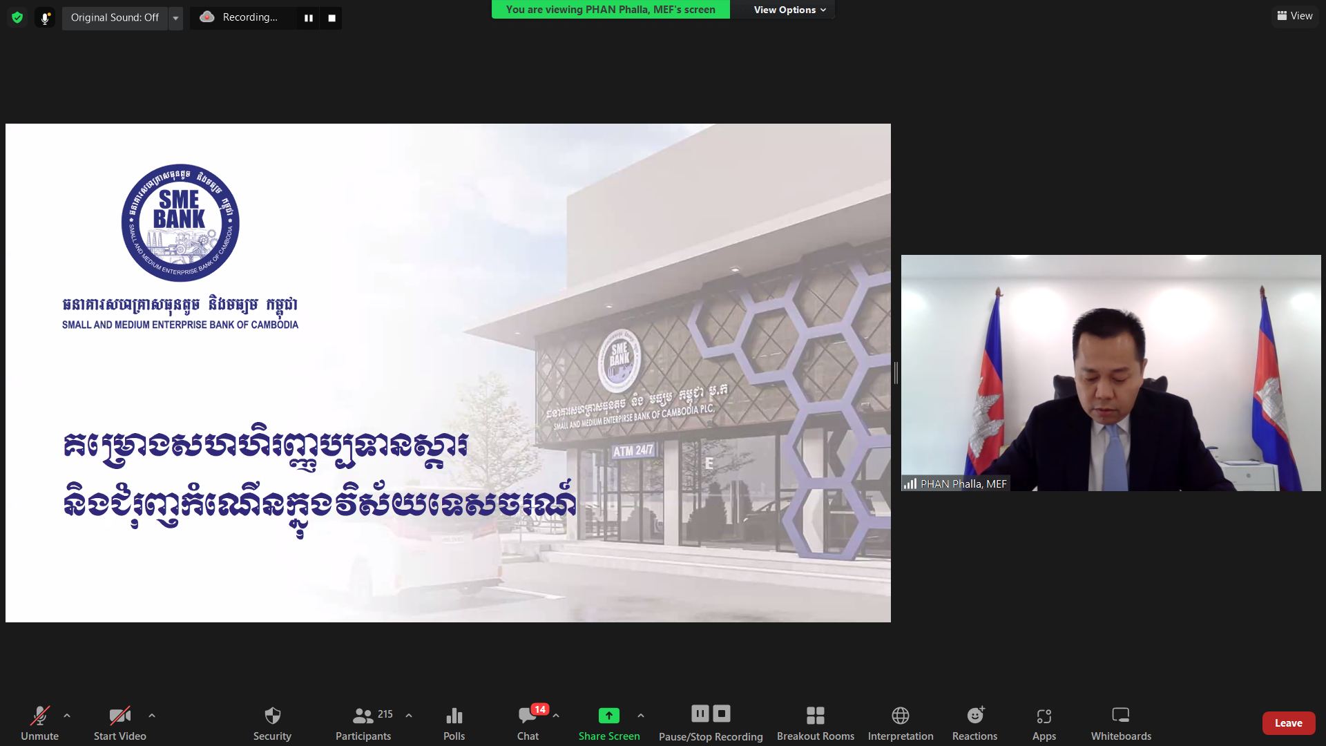 ឯកឧត្ដមអគ្គបណ្ឌិតសភាចារ្យបញ្ជាក់ថា សូមជម្រាបថាកាលពីឆ្នាំ២០២០ និងឆ្នាំ២០២១កន្លងទៅតាមរយៈយន្តការ SME Bank, រាជរដ្ឋាភិបាលក៏បានផ្ដួចផ្ដើម និងអនុវត្តកម្មវិធីសហហិរញ្ញប្បទានចំនួន២ជំហានរួចហើយ ដើម្បីគាំទ្រដល់សហគ្រាសធុនតូច និងមធ្យម នៅក្នុងវិស័យអាទិភាពរួមមាន ទាំងវិស័យទេសចរណ៍ ដែលបានរងផលប៉ះពាល់ដោយជំងឺកូវីដ១៩។