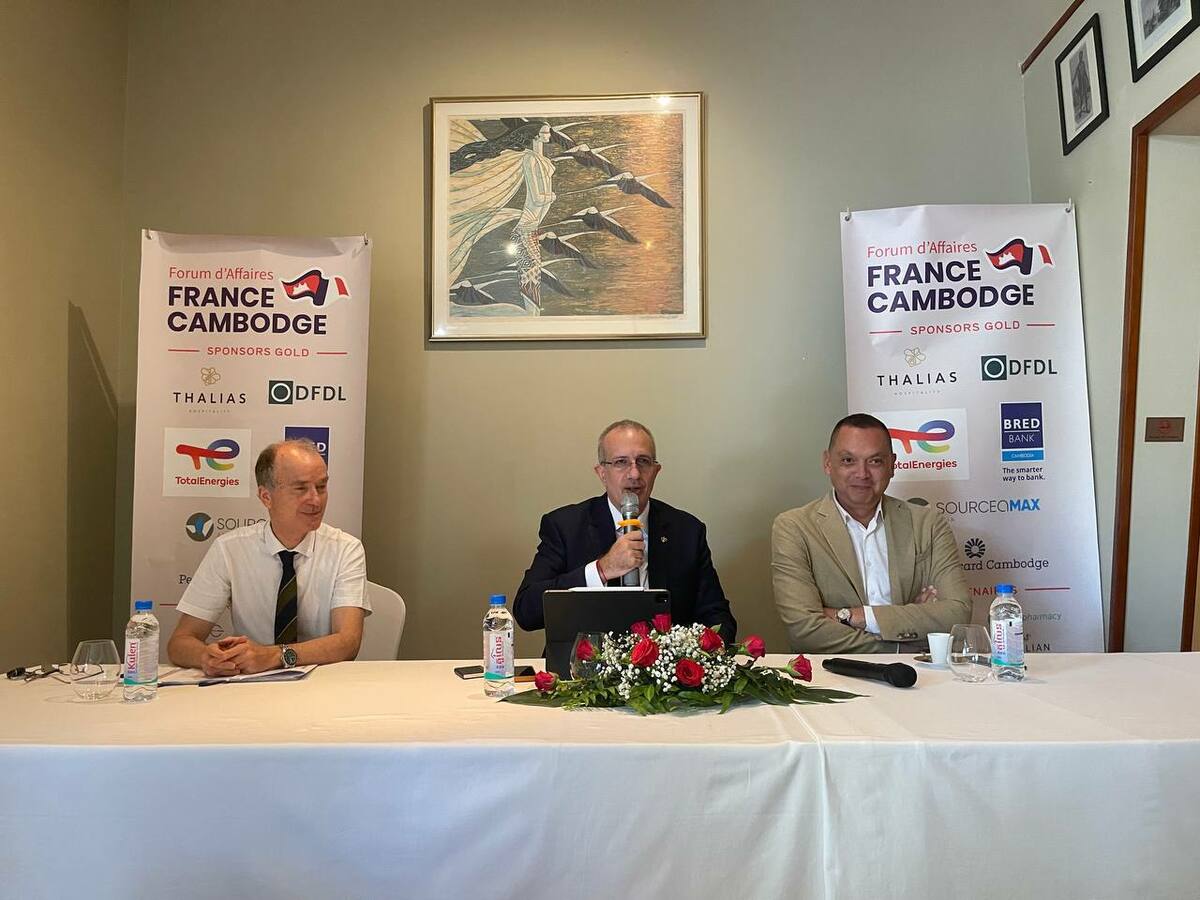 នៅក្នុងសន្និសីទសារព័ត៌មានស្ដីពី «វេទិកាធុរកិច្ចបារាំង-កម្ពុជា» នាថ្ងៃទី០១ ខែមិថុនា ឆ្នាំ២០២២ នេះ លោក Philippe Bandry ទីប្រឹក្សាផ្នែកសេដ្ឋកិច្ច នៃស្ថានទូតបារាំងប្រចាំកម្ពុជា បានមានប្រសាសន៍ថា ក្រុមហ៊ុនជាង ២៥០ មកពីប្រទេសអាស៊ាន និងបារាំង ត្រូវបានរំពឹងថា នឹងមកចូលរួមក្នុងព្រឹត្តិការណ៍ធុរកិច្ចបារាំង-កម្ពុជានាថ្ងៃទី០៩ និង១០ ខែមិថុនានេះ ដើម្បីឱ្យអ្នកធុរកិច្ចបារាំងមកសិក្សាឈ្វេងយល់អំពីវិស័យសក្តានុពលនៅក្នុងប្រទេសកម្ពុជា ហើយ នឹងអាចឈានមកវិនិយោគ នាពេលខាងមុខ។ លោក Arnaud Darc ប្រធានសភាពាណិជ្ជកម្មអឺរ៉ុបនៅកម្ពុជា បានឱ្យដឹងបន្ថែមថា វិស័យដែលមានសក្តានុពល សម្រាប់ធុរកិច្ចបារាំងនៅកម្ពុជារួមមាន៖ វិស័យកាត់ដេរសម្លៀក បំពាក់ និងផលិតស្បែកជើង, វិស័យទេសចរណ៍ និងសេវាកម្ម, វិស័យកសិកម្ម, និងវិស័យថាមពលបៃតងជាដើម។