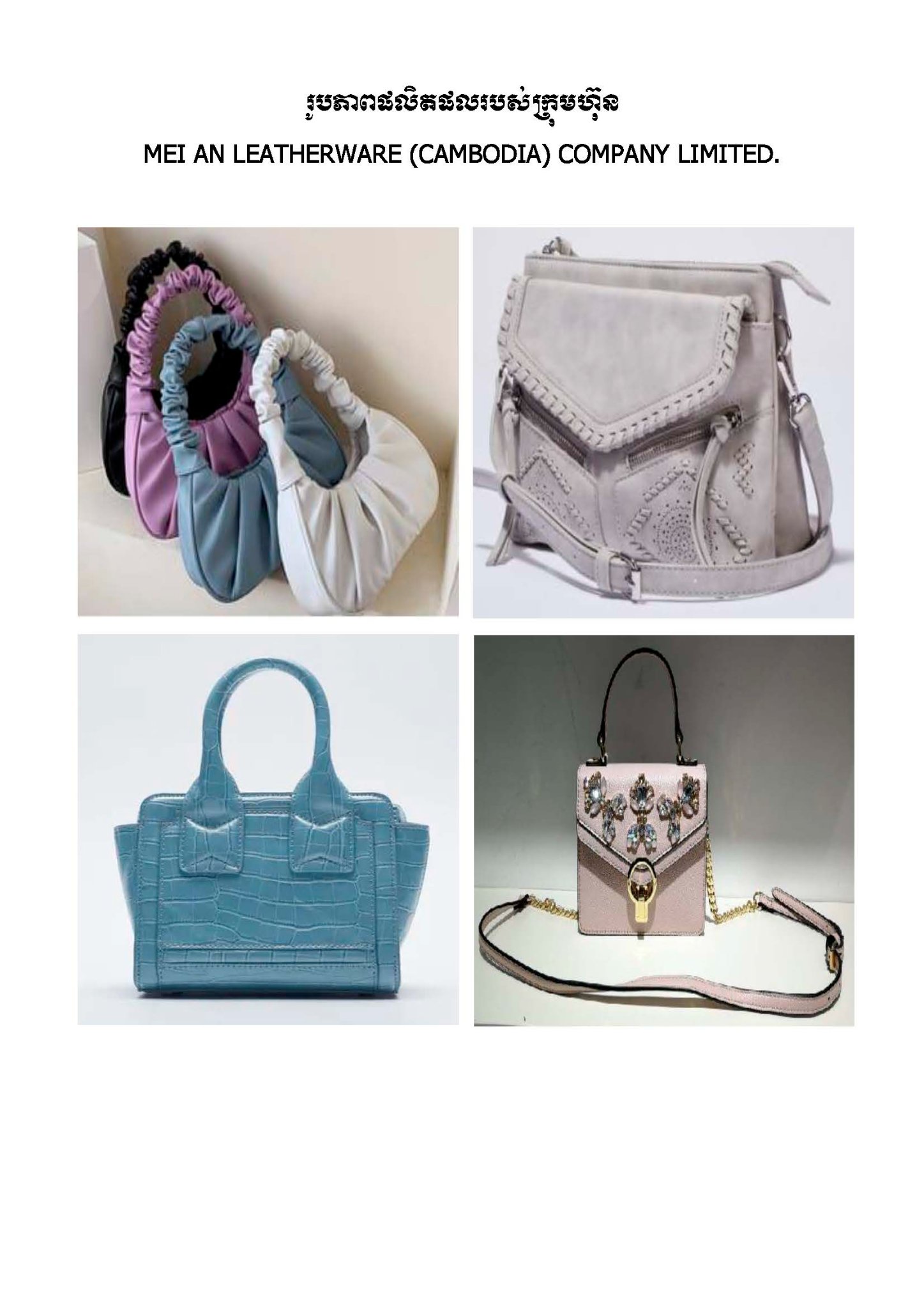 ៣- “MEI AN LEATHERWARE (CAMBODIA) COMPANY LIMITED” គម្រោងបង្កើតរោងចក្រផលិតកាបូប ដែលមានទីតាំងវិនិយោគស្ថិតនៅក្នុងតំបន់សេដ្ឋកិច្ចពិសេស ក្រុងព្រះសីហនុ, ខេត្តព្រះសីហនុ, មានទុនវិនិយោគចំនួន ១០,៥លានដុល្លារអាមេរិក និងបង្កើតការងារបានចំនួនប្រមាណ ១.០០០ នាក់៕